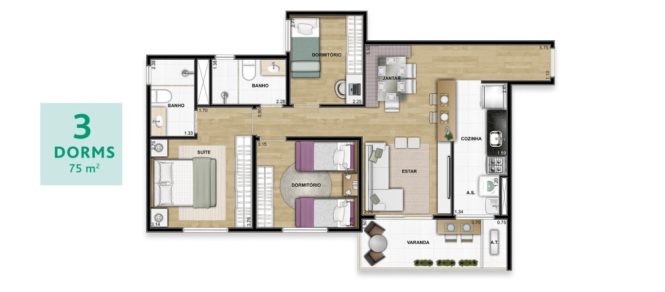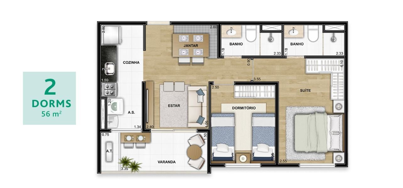 Apartamentos de 56m² e 75m² com Suíte, em um condomínio com lazer completo para toda família e tudo isso à poucos passos da Lagoa do Taquaral.