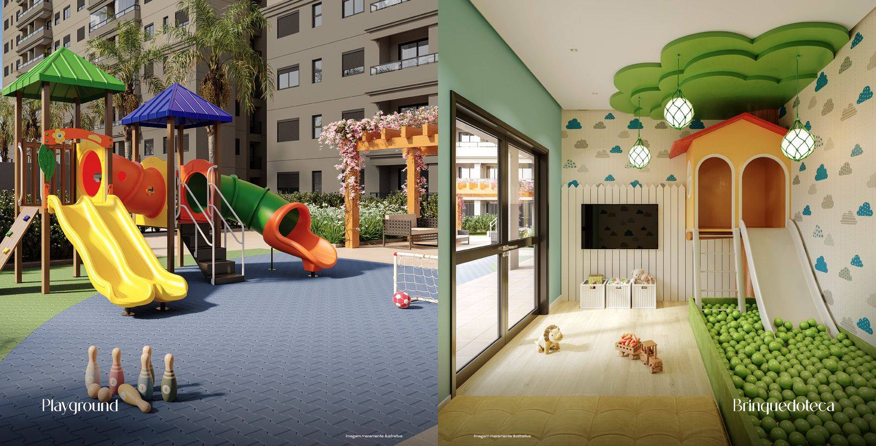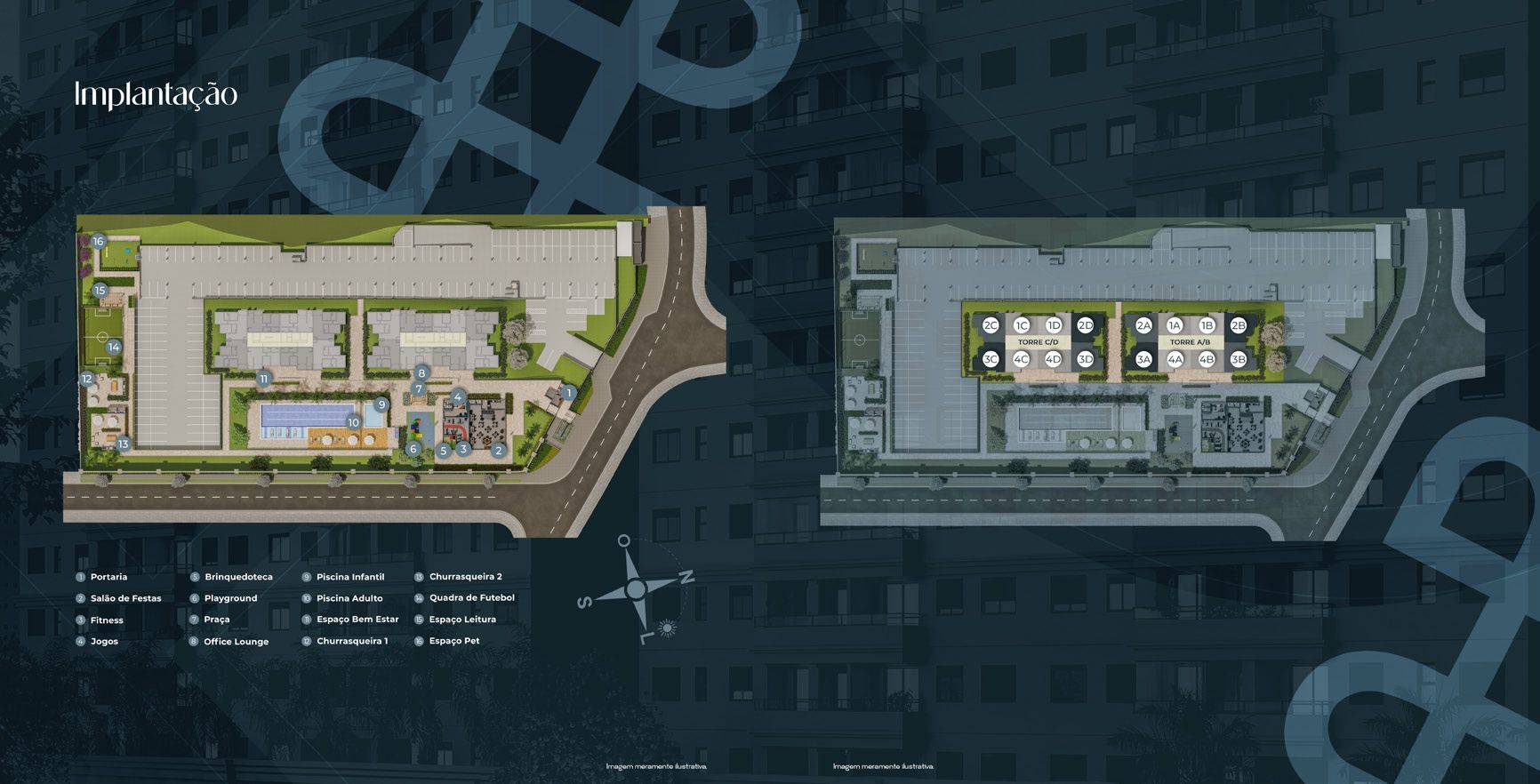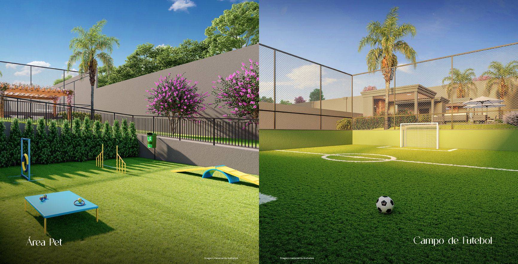 Área de lazer com Salão de Festas, Academia, Salão de Jogos, Brinquedoteca, Play, Office, Piscinas, Churrasqueiras, Quadra de Futebol e Espaço Pet.